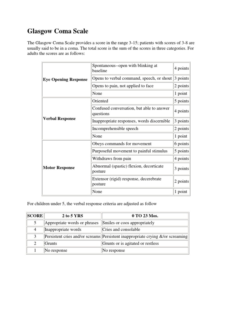 Problems with initial glasgow coma scale assessment caused by prehospital treatment of patients with head injuries: glasgow. The glasgow coma scale or gcs, sometimes also known as the glasgow coma score is a neurological scale which aims to give a reliable, objective way of recording the conscious state of a person, for initial as well as continuing assessment.